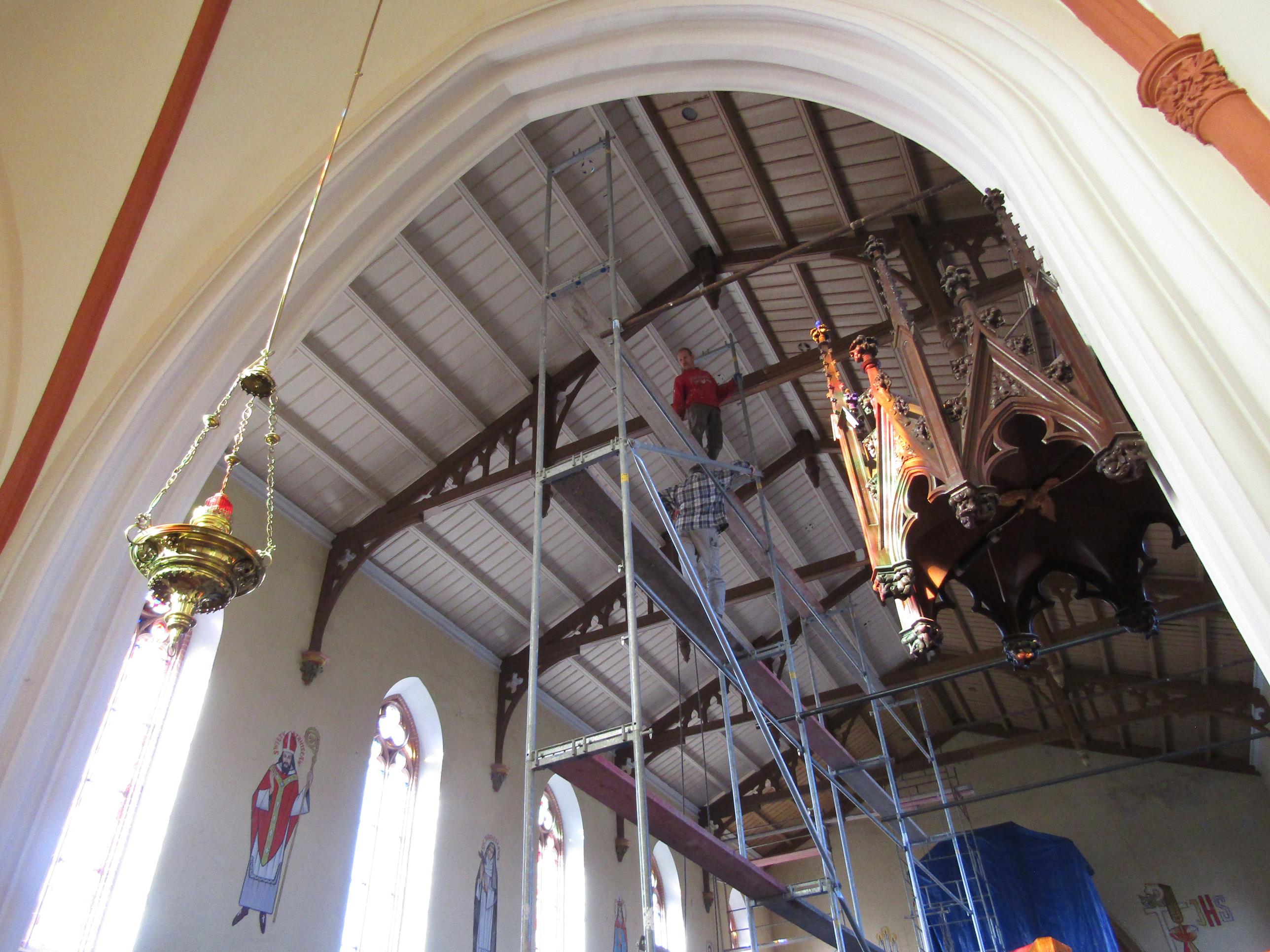 Remont sufitu kościoła w Jaroszowie